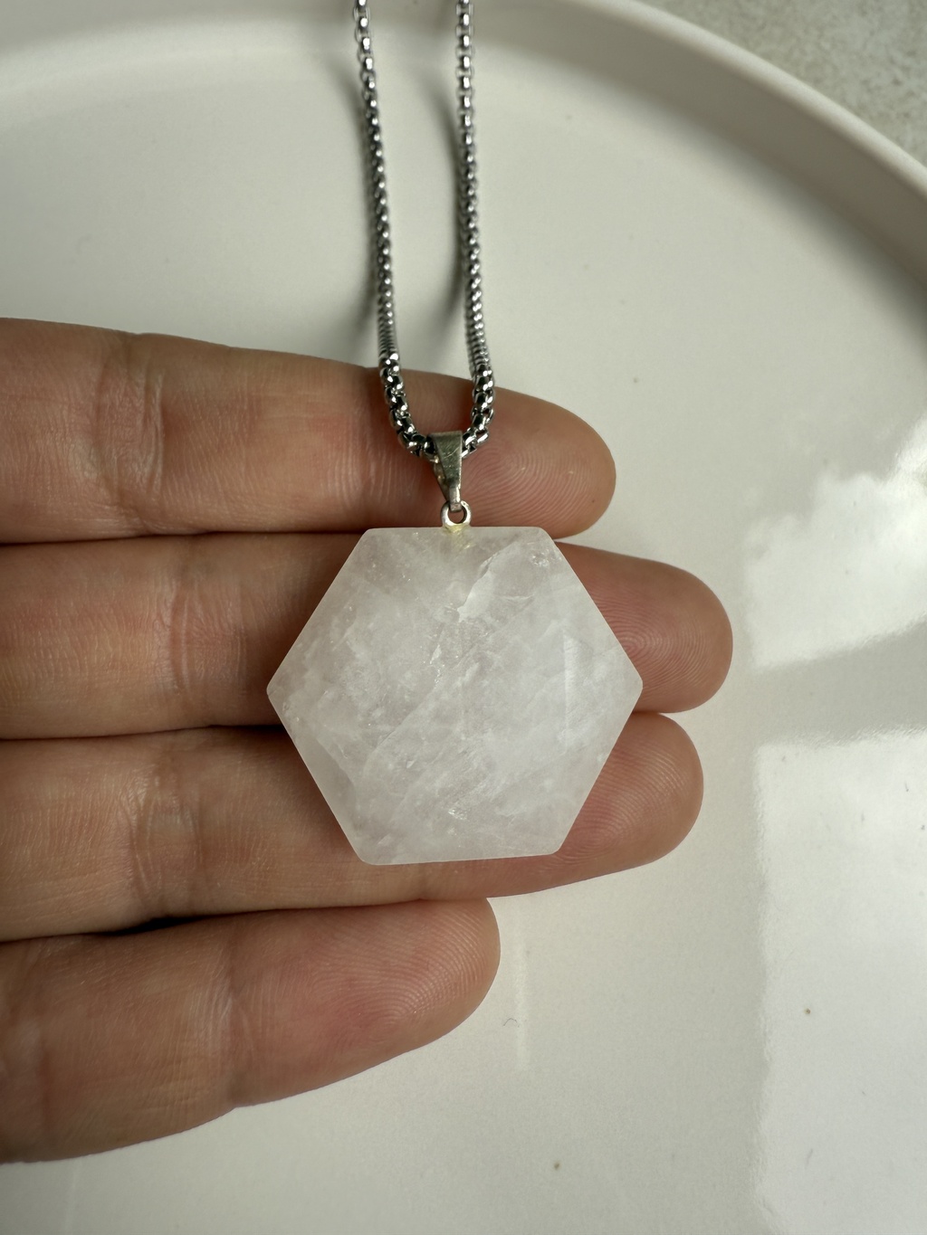 Collar con cadena de acero quirúrgico y dije engarzado de Plata con Piedra Lunar.