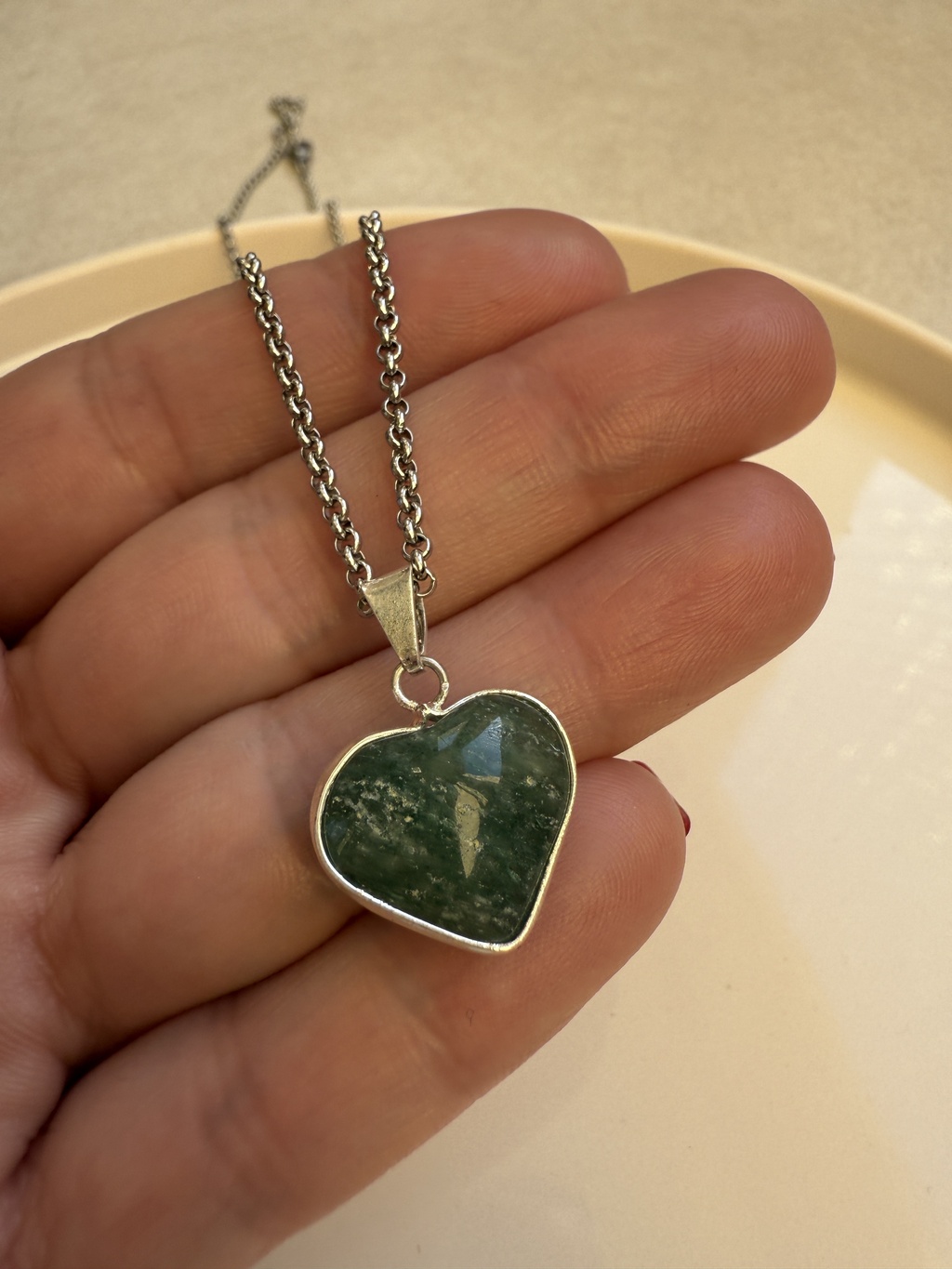 Collar con cadena de acero quirúrgico y dije con engarce de Plata con Piedra Mineral.